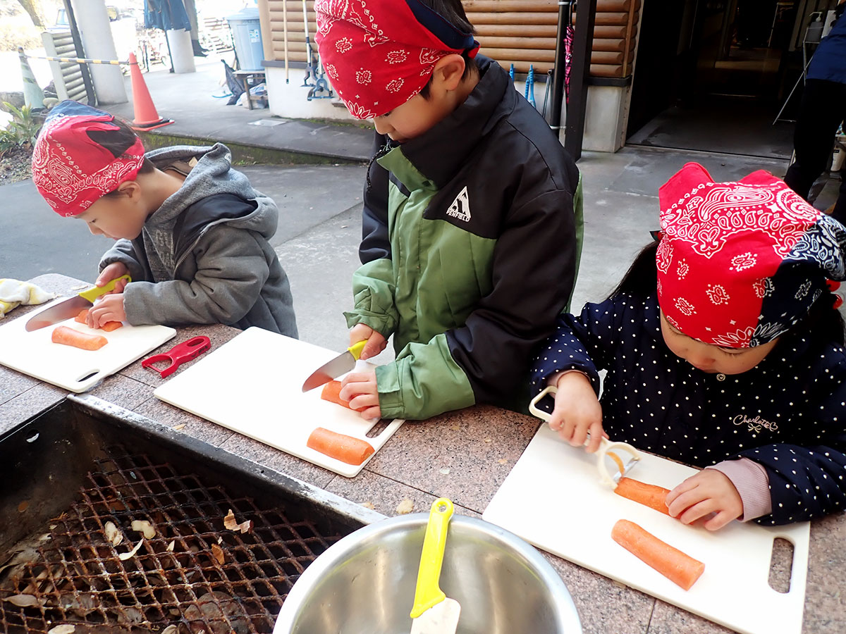 ママとパパは、この時間はお休みしてね! 子どもたちとスタッフで、お昼ごはんを作るよ!