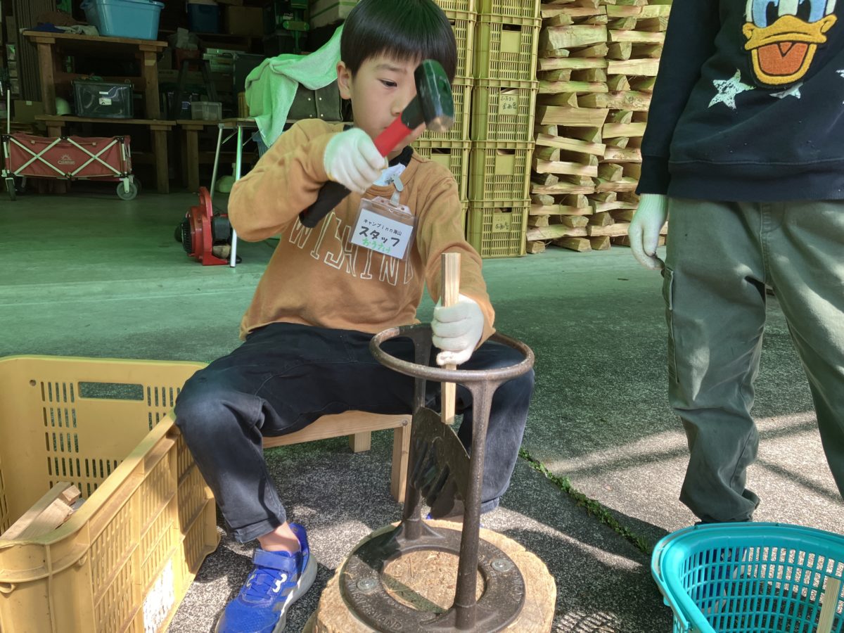 小さなお子様でも薪を割ることが出来る道具を使います